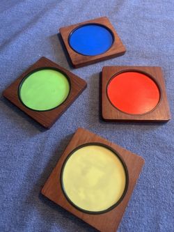 SoldTeak your truth; Set of Four Midcentury Teak and Acrylic Laurids Lønborg Coasters: $39Pomona, CA