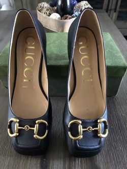 Gucci Leather Black Shoes Cube Heels Size 40 Equal 8.5 -9$150Pompano Beach, FL
