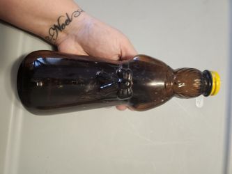 Mrs BUTTERWORTH AMBER COLORED SYRUP BOTTLE with Metal Cap.