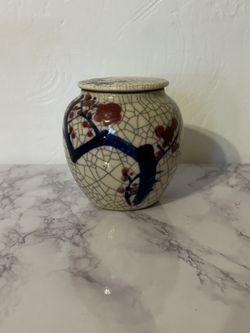 Vintage Japanese Ceramic Jar w/Lid Hand Painted-Crackle Finish $50Wexford, PA