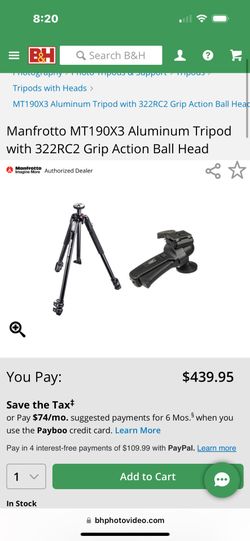 Manfrotto MT190X3 Aluminum Tripod with 322RC2 Grip Action Ball Head$25Casselberry, FL