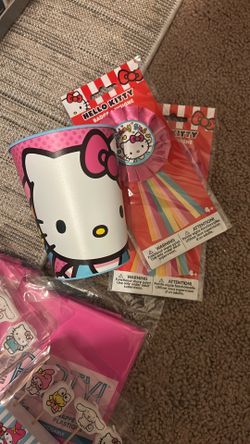 Hello Kitty Birthday Candles Cup Tablecloth Napkins Plastic Ware And Birthday Buttons$5Austin, TX