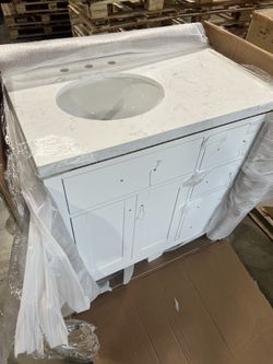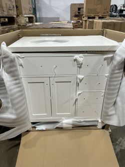 *Clearance* 36” Single Bathroom Vanity Cabinet White Speckled Quartz Countertop - Sink Offset Right$250Wilmington, CA