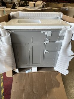 *Clearance* 36” Single Bathroom Vanity Cabinet in Gray with Quartz Countertop - Sink Offset Left$200San Pedro, CA