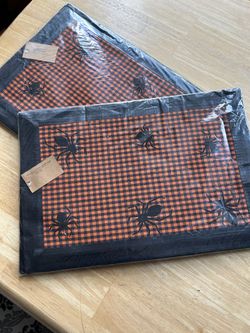 Halloween Placemats Total Of 8 Mats, Orange And Black Spider Cotton Placemats Aman Imports $40Stanwood, WA
