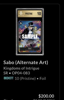 One Piece Sabo Alt Art OP04-083 BGS 10 Pristine – $125.00$150Mesquite, TX