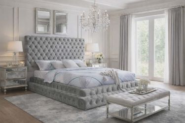GLAM GRAY SILVER VELVET STEP-UP QUEEN KING SIZE BED FRAME - CAMA ESCALONES $998Downey, CA