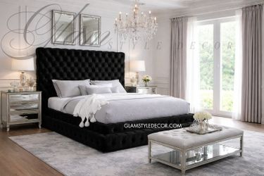 GLAM BLACK NOIR VELVET STEP-UP QUEEN KING SIZE BED FRAME - CAMA ESCALONES $998Downey, CA