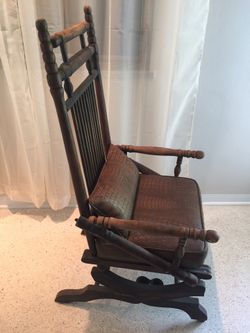 Antique wooden rocker with crocodile leather cushions$335Biscayne Park, FL