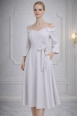 β¨ IZP Beige Off-Shoulder Wrap Midi Dress w/ Belt | Elegant Calf-Length Size M$15Los Angeles, CA