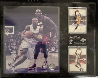 Kobe Bryant and Shaquille O’Neal Photo with 2 Trading Cards Plaque$40Miami, FL