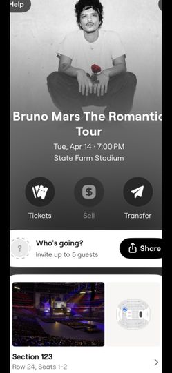 Bruno mars tickets April 14th show$700Laveen Village, Arizona