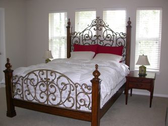 Ornate Queen Bed Frame - Solid Wood & Wrought Iron Scrollwork - Excellent Condition$850San Diego, CA