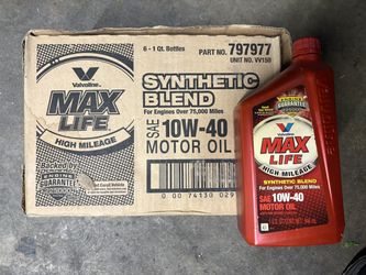 Valvoline Oil MaxLife SAE 10W40 Synthetic 1 Quart Bottle Case Of 6 797977$45Anaheim, CA