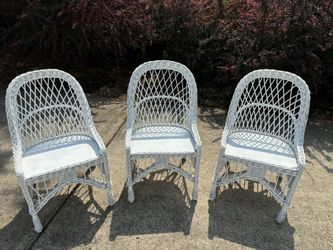 3 Vintage White Rattan Wicker Chairs W/Wood Seats$95Corbett, OR