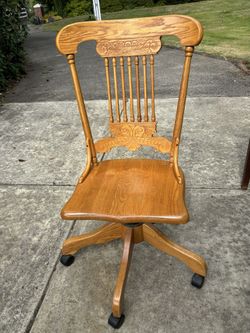 Vintage Golden Oak Pressed Back Office Desk Chair On Casters $65Corbett, OR