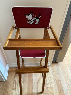 Mcm Wooden Doll High Chair With Red Seat & Back W/ Painted Puppy$30Corbett, OR