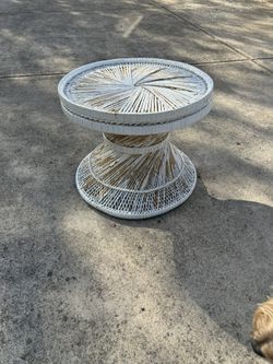 70s Vintage Round Wicker Coffee Side Table Bubble Glass Top Just Needs Paint$65Corbett, OR
