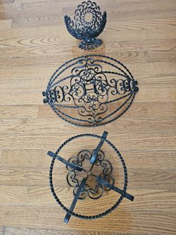 $50.00 - (3) MidCentury, European Designed Iron Baskets! Pedestal Bases, Scrollworks & Heartshapes Design Accents! "Bundle Price" Offer!$50Morrow, OH