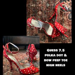 Guess 7.5 polka dot & bow peep toe high heels $10El Monte, CA