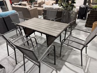 Patio Dining Set 7 Piece Outdoor Furniture with Rectangular Table and 6 Stackable Chairs Family Conversation Set for Garden Backyard Deck, $295$295Morrow, GA