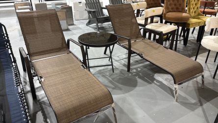 Adjustable Patio Chaise Lounge Set 3 Pieces Textiline Outdoor Foldable Metal Reclining Chairs with Sturdy Glass Top Bistro Table for Beach, Poolside, $165Morrow, GA