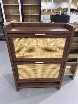 Shoe Storage Cabinet with 2 Flip Drawers, Farmhouse Ratten Shoe Cabinet Holder, Freestanding Shoe Organizer, Narrow Shoe Rack for Entryway, Hallway, W$95Morrow, GA