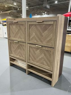 Shoe Storage Cabinet with 4 Flip Drawers, Farmhouse Wooden Shoe Cabinet with Bottom Open Shelf, Narrow Freestanding Shoe Rack Organizer, Hidden Shoe $125Morrow, GA