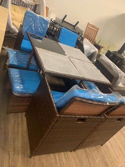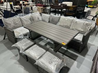 9 Pieces Patio Dining Sets Outdoor Space Saving Rattan Chairs with Glass Table Patio Furniture Sets Cushioned Seating and Back Sectional Conversation $245Morrow, GA