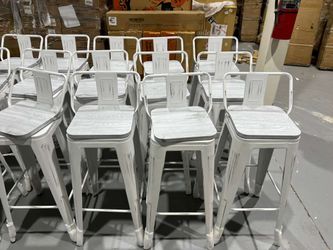 30" Industrial Metal Bar Stools Set of 4 Counter Height Barstools Kitchen Bar Chairs with Wooden Top-Low Back, Distressed White $30 each$30Morrow, GA