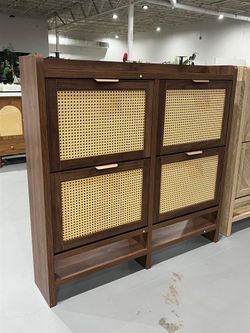 Rattan Shoe Storage Cabinet Features 4 Hinged Doors Hidden Slim Shoes Organizer for Entryway Farmhouse Narrow Shoe Rack Free-Standing Shoes Storage Ca$125Morrow, GA