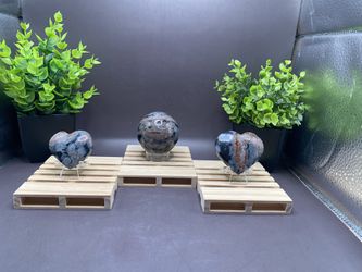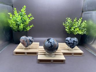 208g 55mm Snowflake Obsidian Sphere, 69g 1.9”x2.1” Heart, 100g 2” X 2.2” Heart Bundle$40El Mirage, AZ