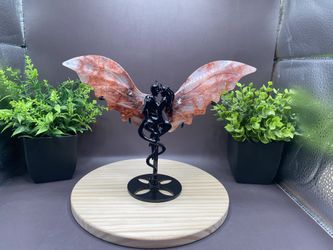 271g 6.5”X9” Fire Quartz Forbidden Love Wing Carving Including Stand$35El Mirage, AZ