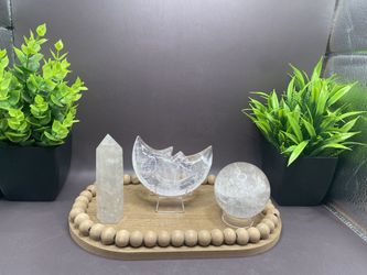 Hand Carved Clear Quartz 138g 3.5” Moon, Sphere 231g 55mm & Tower 87g 3.4”$40El Mirage, AZ