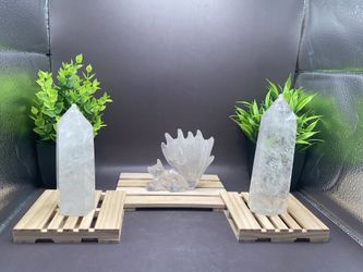 Hand Carved Clear Quartz 198g 3.8”x 3.5” Nine Tail Fox, 348g 5.5” (2) Chunky Towers & 310g 4.7” Tower$55El Mirage, AZ