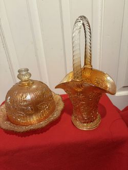Carnival Imperial Irredescent Amber 20 Inch Basket And Butter Bowl With Lid$60Palm Beach Gardens, FL