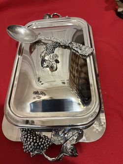 Godinger Silver Plated 3 Qt Grape Oblong Casserole With Serving Spoon And Lid ( New)$70Palm Beach Gardens, FL