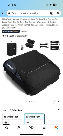 MIDABAO 20 Cubic Feet Waterproof & Coated Zippers, Heavy Duty Car Roof Top Travel Cargo Carrier Bag, Anti-Slip Mat for Cars with or without Racks$60Houston, TX