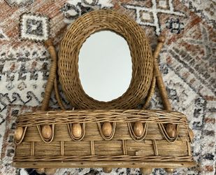 Vintage Organic Wicker Boho Mirror Shelf Caddy Shabby Chic Aesthetic $40Carlsbad, CA