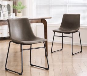 Mid Century Modern Dining Chairs Vegan Leather Upholstered Accent Chairs Metal Black Legs Dark Cappuccino Brown Set Of Two (Please Read Description)$220Carlsbad, CA
