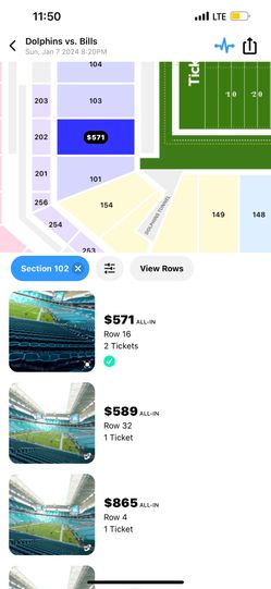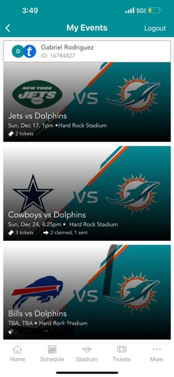 Miami Dolphins Vs Bills$700Pompano Beach, FL