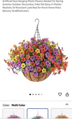 2 New Artificial Faux Hanging Plants Flowers Basket for Spring Summer Outdoor Decoration, Fake Silk Daisy in Planter Realistic UV Resistant Look Real $30Bonita, CA