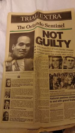 1995 old news paper o j not Guilty great condition$25Orlando, FL