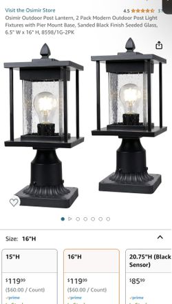 Osimir Outdoor Post Lantern, 2 Pack Modern Outdoor Post Light Fixtures with Pier Mount Base, Sanded Black Finish Seeded Glass, 6.5" W x 16" H, 8598/1G$80Houston, TX