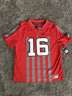 NEW MENS NIKE OHIO STATE OSU BUCKEYES 1916 THROWBACK FOOTBALL MUSIC & CANNON FIRE 2016 JERSEY XL$150Lewis Center, OH