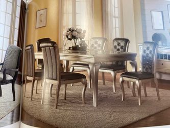 7 piece dining room set with leaf and glass top (silver and gray)$1,000Palmdale, CA