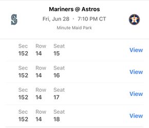 SoldAstros Vs Mariners$90Houston, TX