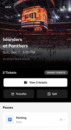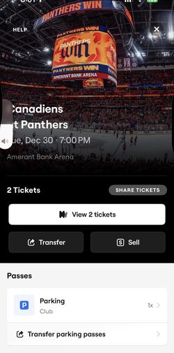 Club Parking Florida Panthers Dec 7$20Oakland Park, FL