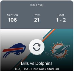 Miami Dolphins Vs Buffalo Bills$800Pompano Beach, FL