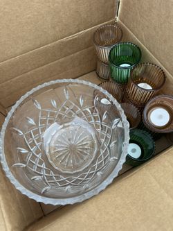 Crystal Bowl And Glass candle Holders $40San Diego, CA